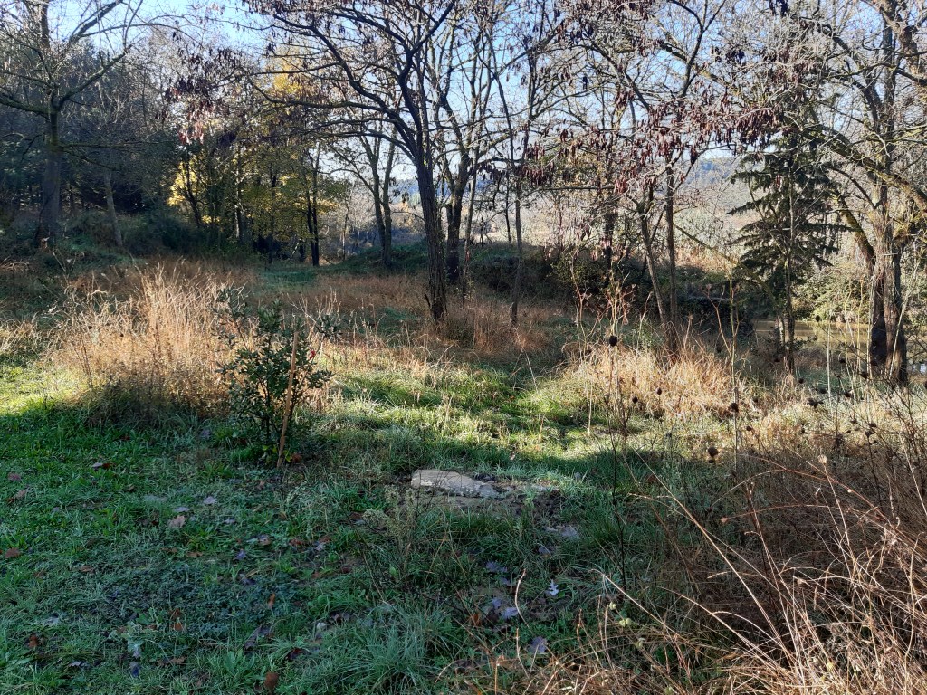 I try and go over to L’Horte daily not only to check on the houses and garage but to say hello to Pop too. Tomorrow’s visit will be a poignant one as it marks a year since Pop passed away. There is something very peaceful about his resting place beneath the oak tree overlooking the river and the land he loved, I could spend hours just taking in the view. I’m sure the same heron flies over every time I walk up the path to Pop’s spot as though it’s watching over him from above, Macgyver and Chrissie keeping guard below…