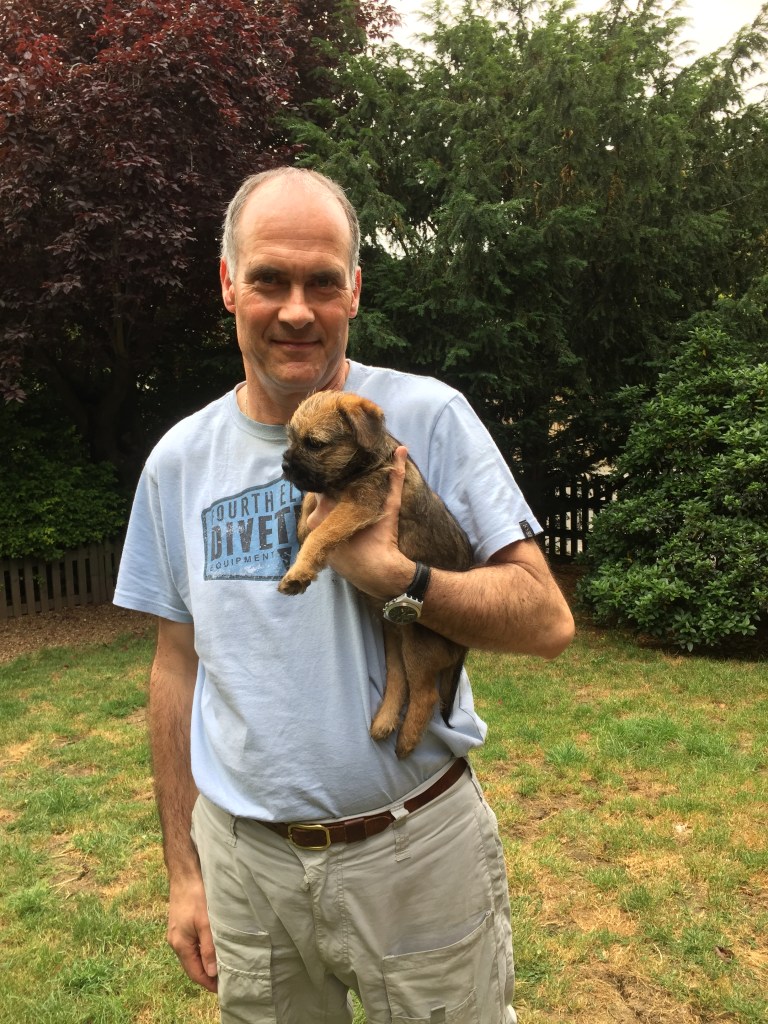 Alice was never meant to be my dog. Tony had a fondness for Border Terriers ever since we had begun looking after a certain family of them. Effie, in particular, had charmed T so much he always said if we ever got another dog, he’d like a BT so after his beloved Ash passed away I got to thinking. With his birthday looming and it being our 25th wedding anniversary later that year, what better present than a little girl of his own? In July 2017, I introduced Tony to a litter of Border puppies and he chose his gal – interestingly he had already named her Alice which happened to be the same name her breeder had given her. A month later, I drove to Somerset along with Arry, my son Callum. my niece Kate and Yogi Bear to pick up the newest member of the gang and boom! Someone fell hook, line and sinker and it wasn’t me. Her heart had been stolen by a dog over ten times her bodyweight – she was the size of Arry’s muzzle – he was totally smitten. Three years later, nothing has changed – he still lets her literally walk all over him.