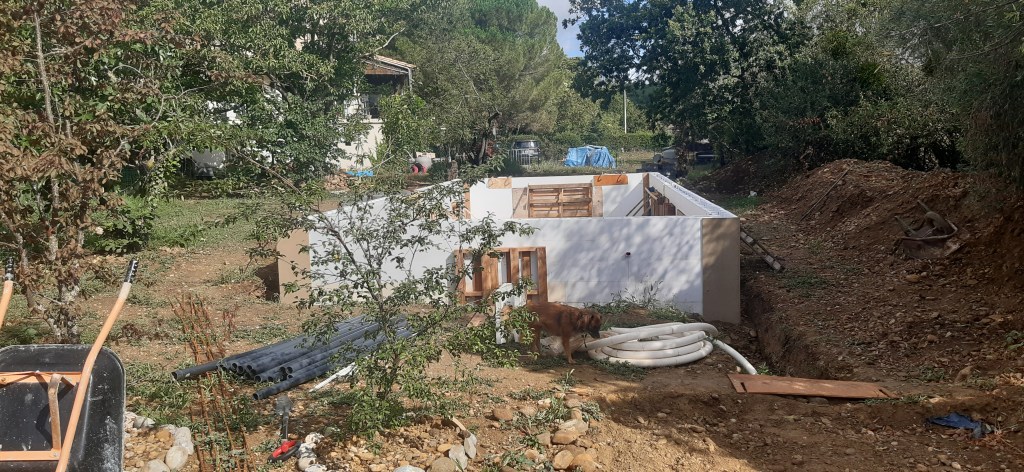 With Callum now settled and up to his eyeballs in sawdust and turps, another family member arrived last night – big brother Simon. It’s wonderful to have him back home, not only because he’s my sibling but also because we needed extra muscle to move the huge dining table out of the garage and into the dining room. At least now, we have extra hands for all the sanding, painting and putting bookshelves together (he took them apart after all). Tomorrow we also have the headache of cement being poured into the fragile pool walls, all of which are currently reinforced with every spare piece of wood on the property. The whole process is, I’m told, as technical and exacting as a surgeon performing a triple bypass. With Denis waiting for a hernia operation (not my fault), poor Lionel has been left with the stress. At least once it is done, we can put the liner in and attach all the pipework leaving only the decking for him to do. That should be a piece of cake compared to everything else but I shall say nothing until there is water in that bloody pool. And my sunbed under the parasol…..and relax….perhaps…