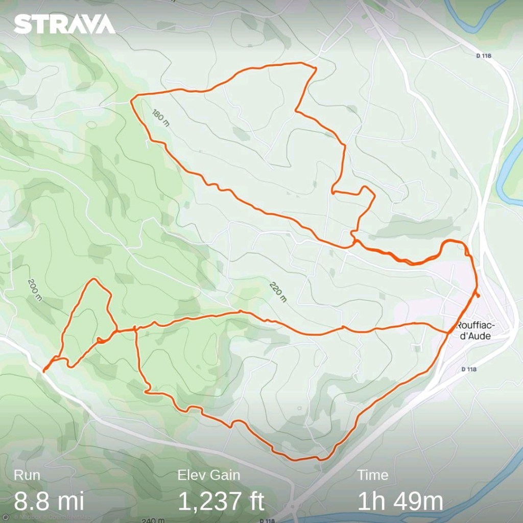 As is the norm on Saturday mornings, I went for a run with Arry and Alice. With the weather finally having broken and beaucoup de pleut having descended upon the land, I decided to take a different route. Running through the vines after a downpour is not an enjoyable activity as I’ve mentioned before, the clay sticks to your shoes making them feel like moonboots. So off we headed up the other side of the village, following the dirt tracks up into the hills. After a few kilometres weaving through the woodland and oohing at the beautiful countryside, it occurred to me that I had no idea where we were going. Arry was of course, running ahead, Alice and I following him scaling steep inclines and picking our way down perilous drops into the undergrowth but truth be told, I was beginning to panic a bit. Eventually Arry stopped ahead, the darling had brought us up to a main road not far from an adjacent village and it was at this point, I remembered that mobile phones have Sat Navs so we couldn’t really get lost. I looked at the running app, a little wiggly yes, but we hadn’t actually gone more than 5 kms. With new faith in my trusted Shepherd, we headed off away from the road and into the trees beyond. A dog’s nose is an amazing thing, Arry had never been in this part of the hills yet he confidently took us, albeit in a round a bout way due to errant wildlife, back to a more familiar path. I’m proud to say we did 13 kilometres even if my legs weren’t happy about it.