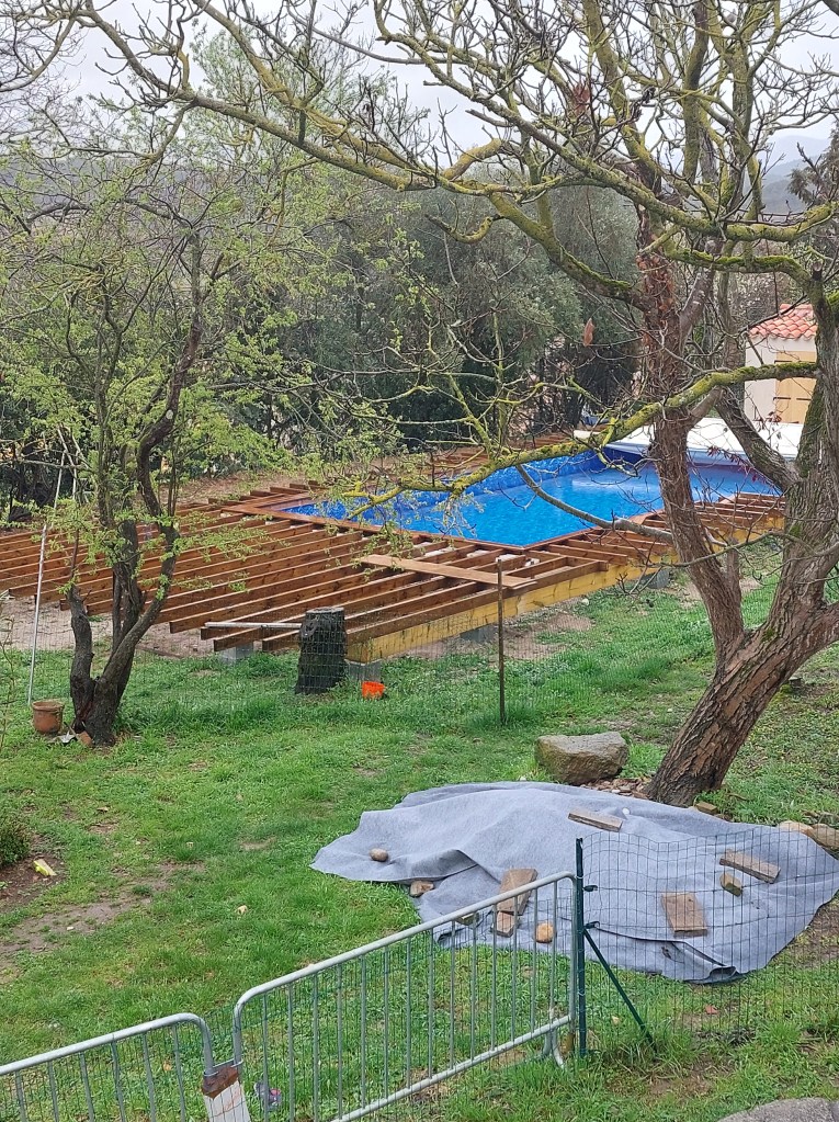 There’s a big grey cloud hanging over Rouffiac at the moment and if the météo is right, it isn’t going to move anytime soon. According to Louise next-door, it’s going to rain for the next two weeks but darling Denis thinks otherwise. According to him, one just looks out of the window every morning and then makes a judgement call because the weather can change in an instant around here. He’s right, of course. I drove back from Carcassonne yesterday and the rain was bucketing down but as soon as I turned the last corner for home, the skies cleared. Unfortunately it didn’t last although lovely Lionel and Denis did manage to get most of the margelles, otherwise known as the pool edging, into place before the heavens opened again. I’ve given up worrying about when the bloody thing will be finished and the fences and the landscaping. The ever-optimistic Lionel has a list and assures me all will be completed within the next few weeks. I’ve heard that before.