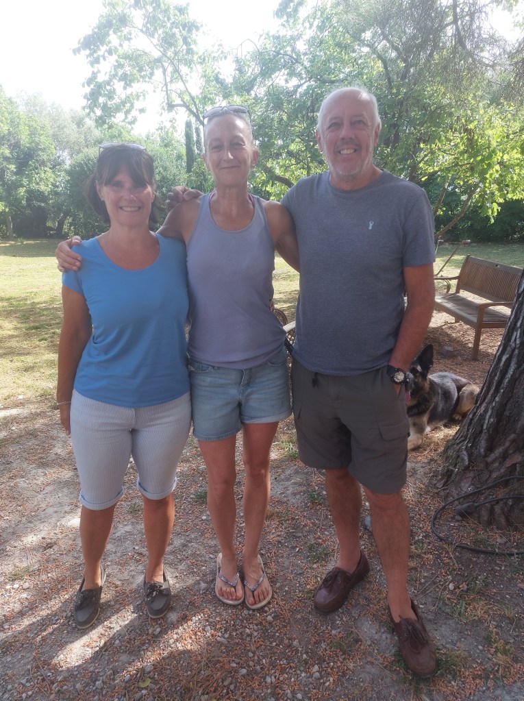 With the 4th anniversary of Tony’s death on Tuesday, I was beyond excited when Fran and Steve (Tony’s sister and her other half) arrived for a quick overnight visit on Friday. We haven’t seen each other for over 2 years so emotional hugs all round. After a grand tour of the property and a much-needed dip in said pool, we chatted long into the night over Mumo’s scrumptious coq au vin and several bottles of the red stuff. With their whistle stop tour of Southern Europe ongoing, the catch-up was all too short but our guests left with the promise they’d stay longer next trip.