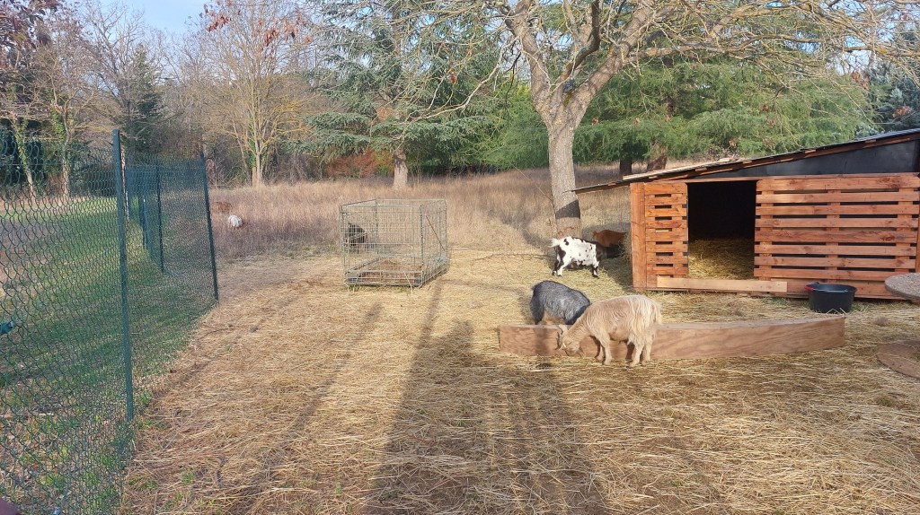 I spent most of last week being bored. Although I went back to running up the hills albeit with knees strapped and eyes downward watching out for rogue roots but feeling good, everyone else seemed to think I should be taking it easy and putting my legs up. With my offers of help being turned down politely and not much to do in the garden except amuse the woofers, by Friday I was ready to punch something -unfortunately, we can’t put the boxing bag up until the painting is done in the converted utility room. I am not an easy person to be around when I’m not doing – ask Mumo. I get tetchy, twitchy and liable to fly off the handle about the most insignificant annoyances like not being able to find my sparring pads. So with cabin fever beginning to reach dangerous levels, I decided a visit to a couple of second-hand shops was in order. The new space needs a sofa bed for a start and I do love wandering around trocantes looking at the oddities mashed in with the ordinary everyday stuff. Naturally I roped Denis into coming with me, apart from knowing the various patrons of such places, he never fails to put fun into our days out. We didn’t find a sofa bed and even if we had, I wouldn’t have paid the extortionate prices scrawled on their labels but we did have a bit of a giggle over a matching set of Spanish Toreador outfits. Very short Toreadors. Boot empty and not ready to return to chez moi, we then opted for a trip over to l’Horte and a bit of pygmy goat cuddling- tearing up the back roads in Giselle was great therapy even if Denis’ knuckles were turning white. To use a quote from one of my favourite movies “this baby corners like she’s on rails”. I also had a load of bagged up prawn shells on the back seat to off-load into the river which were a bit whiffy. I think more of the seafood scraps ended up in the bushes lining the bank than the actual water – I don’t have a good aim and those what didn’t make into the fishes mouths ended up being scoffed by the resident dog. A veritable Labrador buffet. With the houses now nothing but bricks and mortar, literally, there was something quite poignant about a Lab wiggling its way down to the water’s edge – the first L’Horte dog was one too.