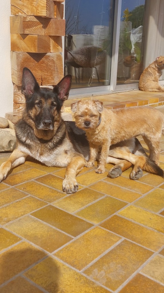 It won’t surprise you to read that I was back at the vets again on Friday. I’d found a small lump on Arry’s chest (no it wasn’t his brain, that has never been accounted for) so being a worrywart and him being a great big goof of a German Shepherd, I popped him in for a check-up. Denis offered to come with me but I managed to convince him that I could handle the beast, I’ve had a lot of practice over the last seven years. That and I cleverly booked the first appointment after lunch, less likelihood of there being other needy pets waiting. In fact, the only other dog in there was an elderly Pointer with an obvious bladder issue and it just so happens that Arry loves Pointers. He had a bosom buddy in London called Arnie of the same breed. A semi-calm Arry is a wondrous thing and so is a negative result on a little lump. Just a lipoma although how he can have any fatty bits anywhere is beyond me.