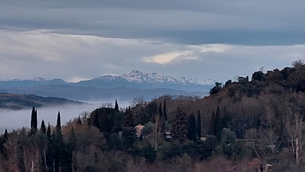 I’ve spent most of the week removing a century’s worth of grime off the old theatre seats with an old toothbrush. It’s a painstakingly slow task but after three rounds of scrub, rub and wipe, the wood is just about back to its original colour. And since the last week was almost non-stop drizzle and gusty winds, being undercover and busy in the remis suited me just fine. At least the garden is looking better now that the terre has had a decent soaking – there are daffodils popping up all over the place and the skyline is covered with pink blossom. I did notice however, when I was doing the usual hike up the hills, that the clay surrounding the vines is nowhere near as bad to run on as it was last year. My ankles are thankful even if the grapes aren’t.