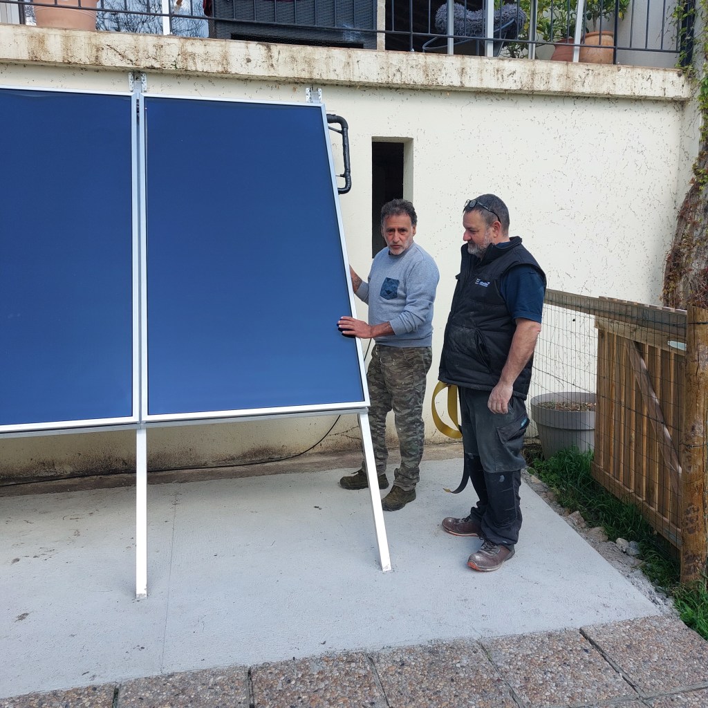 Sadly, as one moves in, another leaves. After 2 years of toil, changing the entire heating system and disposing of the old one, my beloved Max chauffagiste extraordinaire has finished what he came to do. With the final flourish being the installation of whopping great solar panels (many jokes made about E.T landings) and an equally whopping bill deposited, Max pootled off in his battered camion – it hasn’t escaped the mischievous front gate either and headed off into the sunset. Or Limoux I expect. Of course he’ll be back from time to time, if only to check the oil reservoir but I will miss his practical jokes (“Sophi, don’t touch the solar panels because they are very hot!” I did, they weren’t, he cracked up) and his early morning bellows of “Bonjour Stupido!”. He adores Arry and the feeling is mutual. Denis will miss him too, the two of them have become great bosom buddies and have the rest of us in stitches when they start winding each other up. As I hugged my Monsieur le Max goodbye yesterday evening, he smiled and said he would see me soon – I was bound to break something within a day or two.