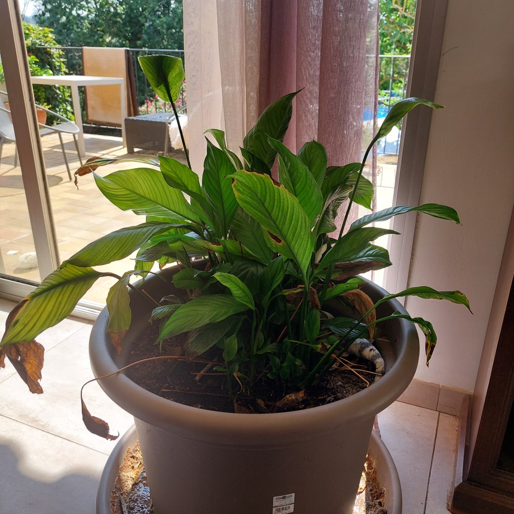 Three years ago today, I safely landed the Mothership and her cargo at L’Horte – the cargo being myself, my best friend Rene, 9 woofers and a 4 ft high Peace Lily. In my blog from that Sunday I wrote, ” I’ve made it. I’ve finally come home and so the next chapter of my life starts. A new beginning and hopefully many many more blogs and a book to begin. As they say in France; Bienvenue dans ma vie”. It’s hard to take in sometimes, I’ve crammed so much into the new chapter since then. Whilst two of the original woofers, Evee and Gizmo, are no longer with me, I have managed to bring up a litter of Border terrier puppies and keep the one that is my precious Sherman. I wrote that book and am now plodding away on the sequel and I still write the blog every Sunday. I helped build a pool and learnt how to mend liner holes underwater. I renovated a neglected garden, added a potager and blinged up our corner wall. And somewhere in the middle of all that, I fell in love with a wonderful man – my Denis and a little village called Rouffiac d’Aude. And although she is somewhat frail these days, being around 28 years old, the Peace Lily is still with me. And, in case you haven’t had enough ‘and’s’, tomorrow I will be flying back to the UK for the first time since I left. It’s a funny old world.