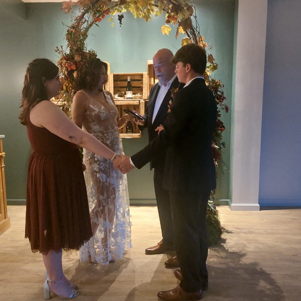 Speaking of doing places up, I had the chance to help my good friend Laetitia, she who runs her family’s vineyard in Rouffiac, organise a wedding. A couple from Colorado who have a second home in a nearby village asked me if I knew anyone that could house the celebration and as Jacey, the bride, wanted a view of the sunset to be photographed with, I suggested Closteisseire (the vineyard). Actually I also mentioned chez Abraham’s too but Jacey thought it was too big for what was to be an intimate joining of hands. I’d never met either her or Joshua, the groom, before – Joshua and I have been pals via Facebook for a while, since we discovered we lived close to each other and were both looking for tradesmen. A few days before the big event, I caught up with Jacey to show her the venue and since they were here at the time, I dragged Sophy and Rene with me. Luckily, the bride loved the place and assured by Laetitia’s father-in-law that it wasn’t going to rain on her big day, she planned a couple of sites to put up the flower arch for the pics. Well, they may not have had the forecast they’d hoped for, windy and wet was the afternoon but Joshua and Jacey tied the knot in the warmth of the tasting room, accompanied by his two children, beaming smiles and quite a few tears around. I feel a new career coming on.