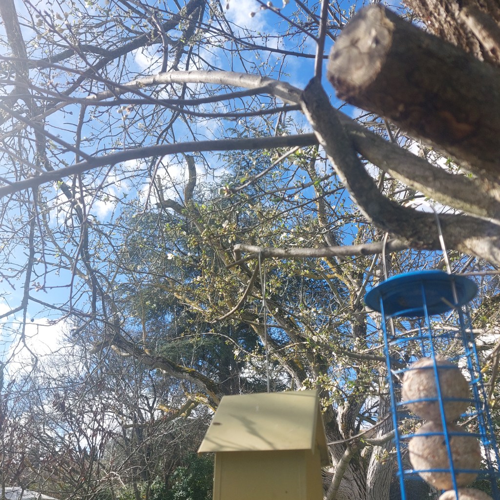 According to the online horoscopes that I said I wasn’t going to read anymore, the start of the Chinese New Year on Tuesday was all about shedding the old Snake’s skin and embracing the power of the Fire Horse. Well, I’m not sure about the descaling bit but my epidermis is currently exposed to a strange phenomenon as I currently tap tap away on this here blog whilst sitting out on my terrace under a hazy blue sky and a ball of sun rays. And if Monsieur Météo’s forecast is anything to go by, we are about to have a little more of a taste of Spring in the coming days; something we thoroughly deserve down here after all the storms and soaking of late. As I was filling up the bird feeders yesterday, the surprise noting of the plum tree’s blossom made me do a little happy dance – a careful one as the garden is rather over-grown and you’d best be careful what you might step on.