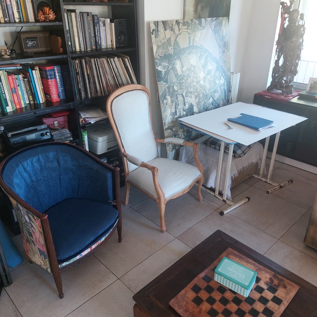 Mercifully, I’ve had enough time to recover for this morning’s visit by the latest estate agent else my head would have been still buried under Sherman. Photos were the order of today which for me meant hurrying around to get the apartment looking less like a factory and the pool looking vaguely clean before corralling the woofers out of sight lest they moon to the camera. Brother Simon told me such brave feats are unnecessary these days what with AI and fancy apps but 7 furry beasts could be stretch for any computer boffin. I did leave my latest creations on display though including the freshly-pimped up flower pots I found in the old chicken shed. That and the artfully displayed bijoux in the room downstairs. Well, they are after all, an international agency so you never know.